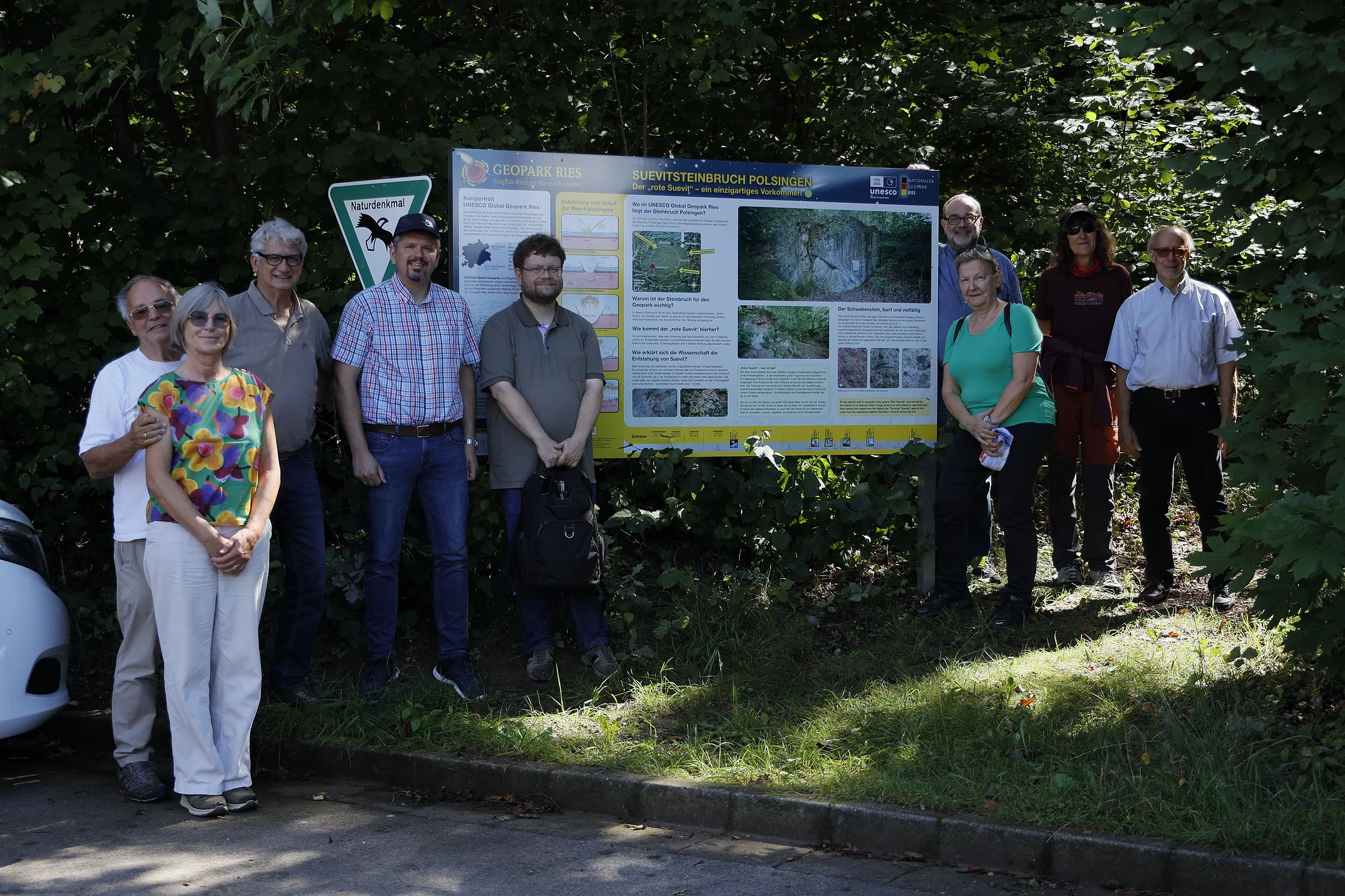 Die Exkursion führte die Gruppe zu zahlreichen Geotopen im UGGp Ries. Als Ergänzung wurde auch das Steinheimer Becken, der Zwillingskrater des Rieses besucht. Die räumliche Nähe zweier unterschiedlicher Impaktkratertypen ermöglichte den Teilnehmern direkten Vergleich der Kraterformen. Die Exkursion wurde vom UNESCO Global Geopark Ries organisiert und von Gisela Pösges begleitet.