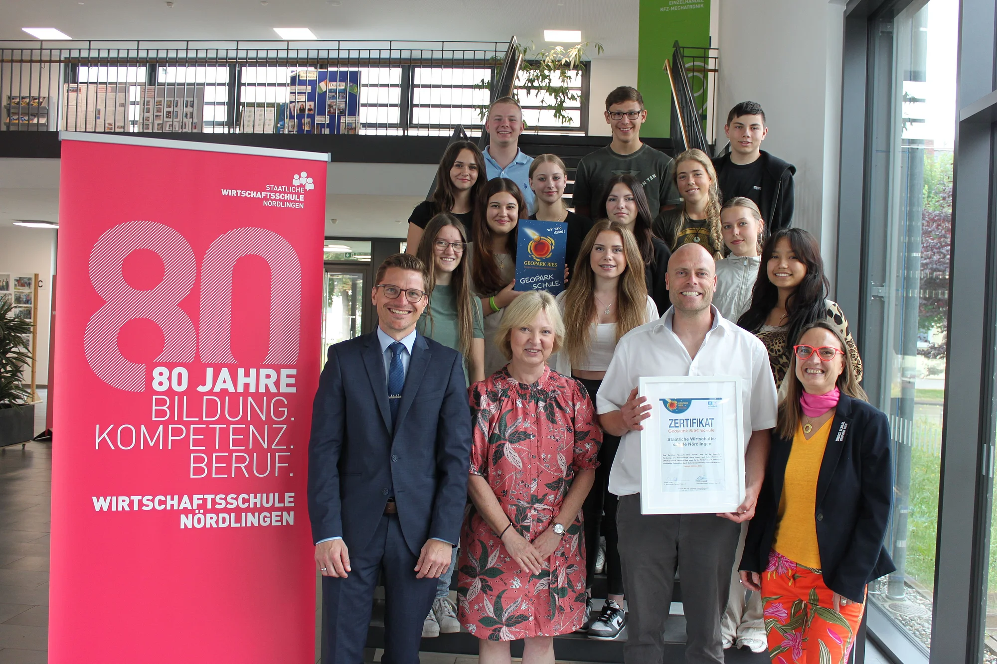 Die Themen des UNESCO Global Geoparks Ries wurden an der Nördlinger Wirtschaftsschule im Rahmen des Unterrichts in den Fächern „Wirtschaftsgeografie“ sowie „Mensch, Umwelt, Technik“ bereits seit längerem besonders behandelt. Auch Werteerziehung und Umweltschutz und damit Bildung für nachhaltige Entwicklung ist an der Wirtschaftsschule Nördlingen von großer Bedeutung. Wichtige Voraussetzungen für eine Geopark Ries-Schule, die erfüllt und jetzt mit der offiziellen Urkundenübergabe belohnt wurden.