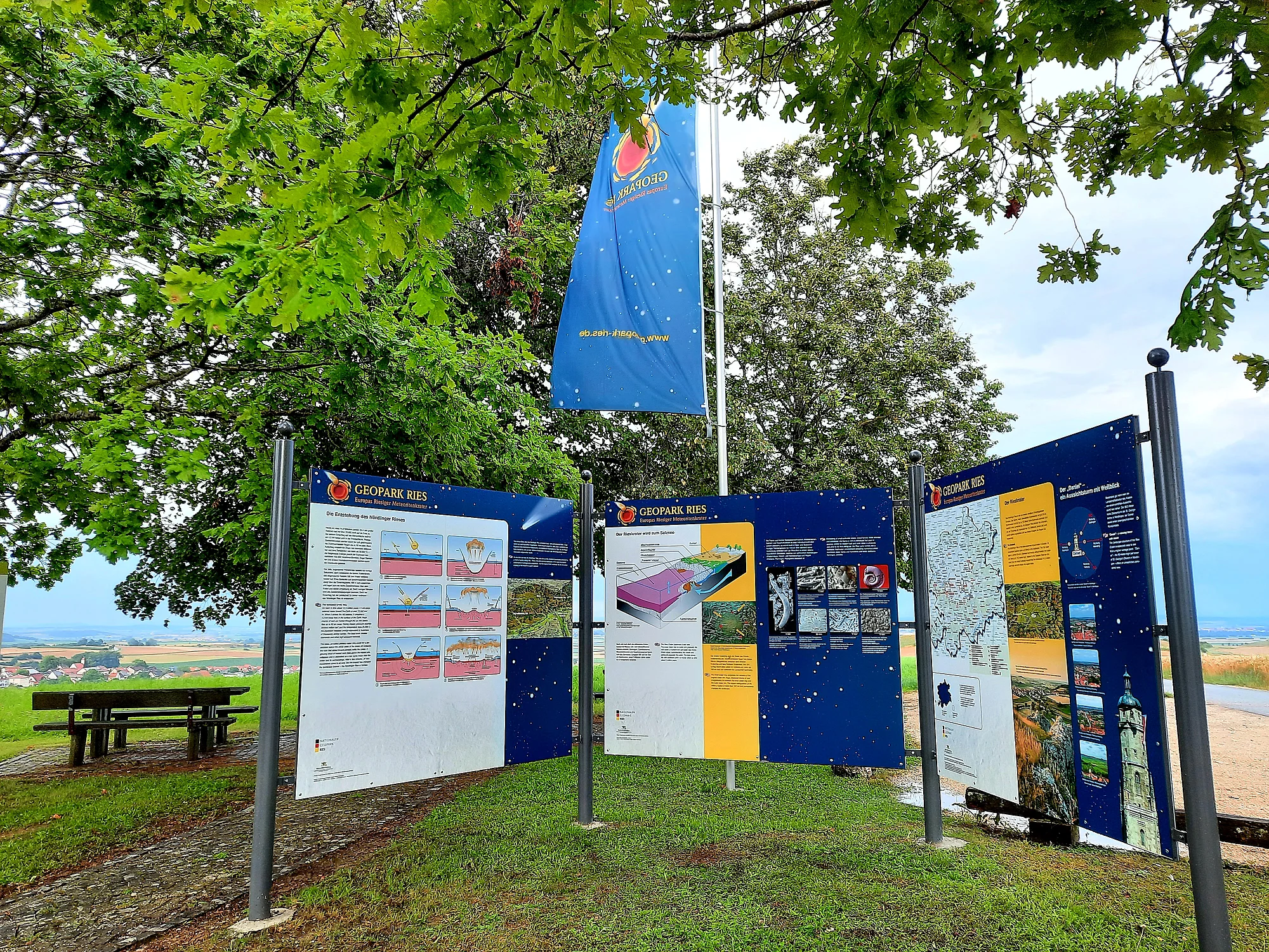 Auf Initiative von Antonie Schäble aus Wemding und Hermann Straß aus Nördlingen werden nun am Lommersheimer Weg in Wemding, wo Oberjura-Riesgesteine (Kalke) liegen und ein besonderes schöner Blick in den Rieskrater möglich ist, auf einer neuen Tafel Informationen zum Riesereignis gegeben. Der Tafeltext wurde von der Geopark-Geologin Gisela Pösges erstellt und erklärt die Auswirkungen des Einschlags auf die Wemdinger Umgebung.