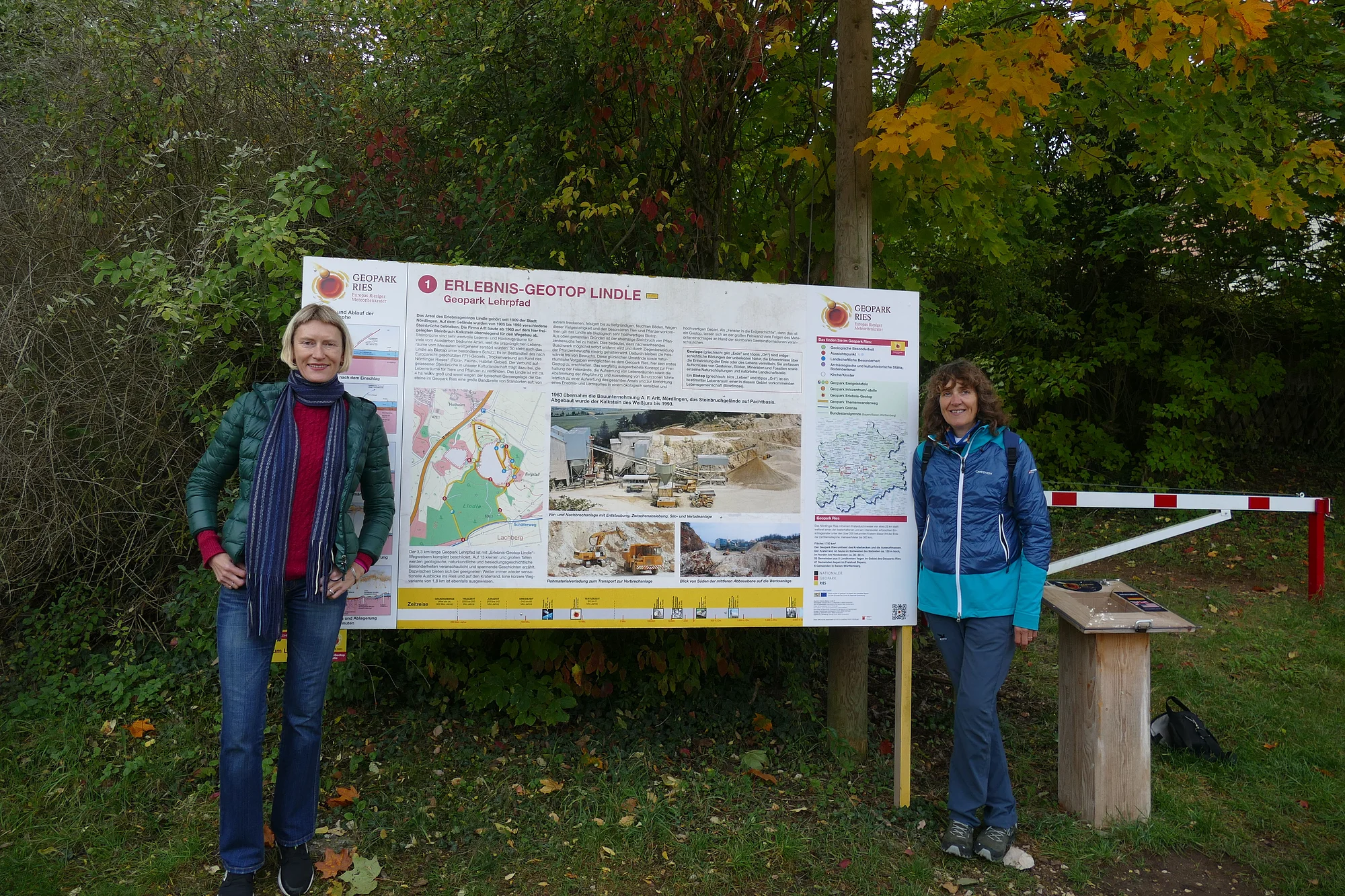 Beim Besuch des Erlebnis-Geotops im Lindle mit der Geopark-Geologin Gisela Pösges, zeigten sie sich von der Infrastruktur des Geopark Ries beeindruckt.