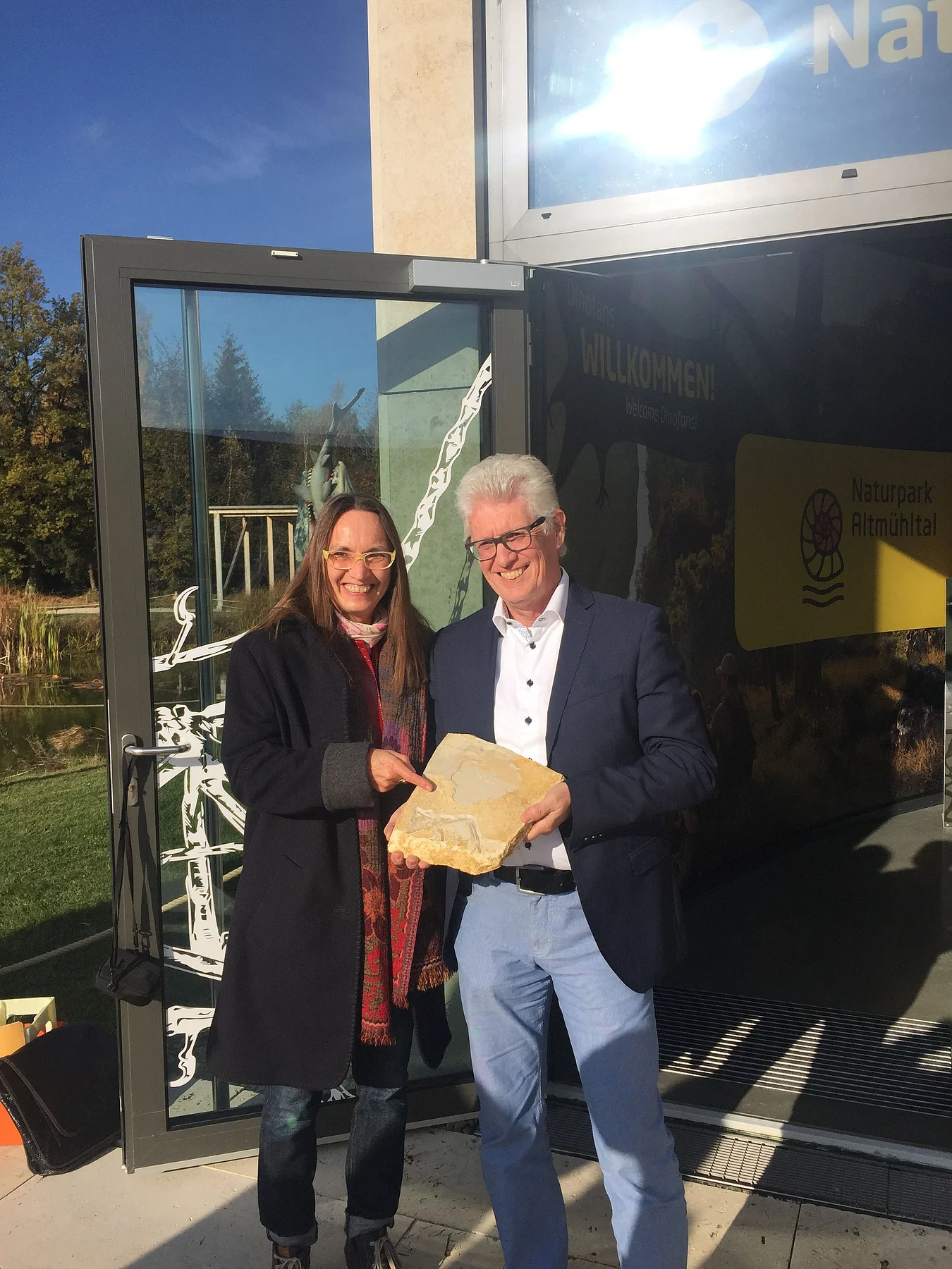 Der dazugehörige Infopavillon des Naturparks Altmühltal, mit dem Archaeopteryx als einzigartige Attraktion der Altmühl-Region, wurde nun am 26.10.18 offiziell eröffnet. Der Pavillon schlägt eine Brücke der Erlebnis-Möglichkeiten vom Altmühltal, durch den Geopark Ries, bis nach Nördlingen zum RiesKraterMuseum.