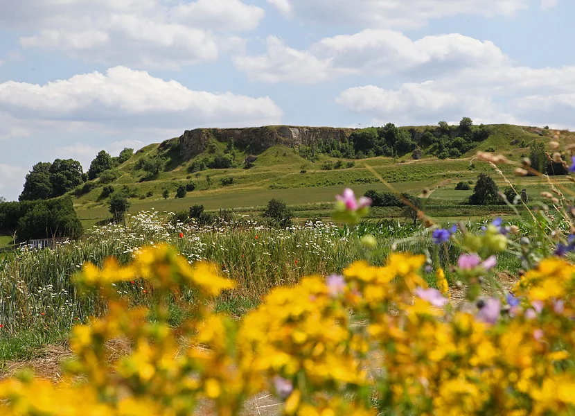 Massenkalkblöcke im Kalkmagerrasen bis hin zum Flachsberg