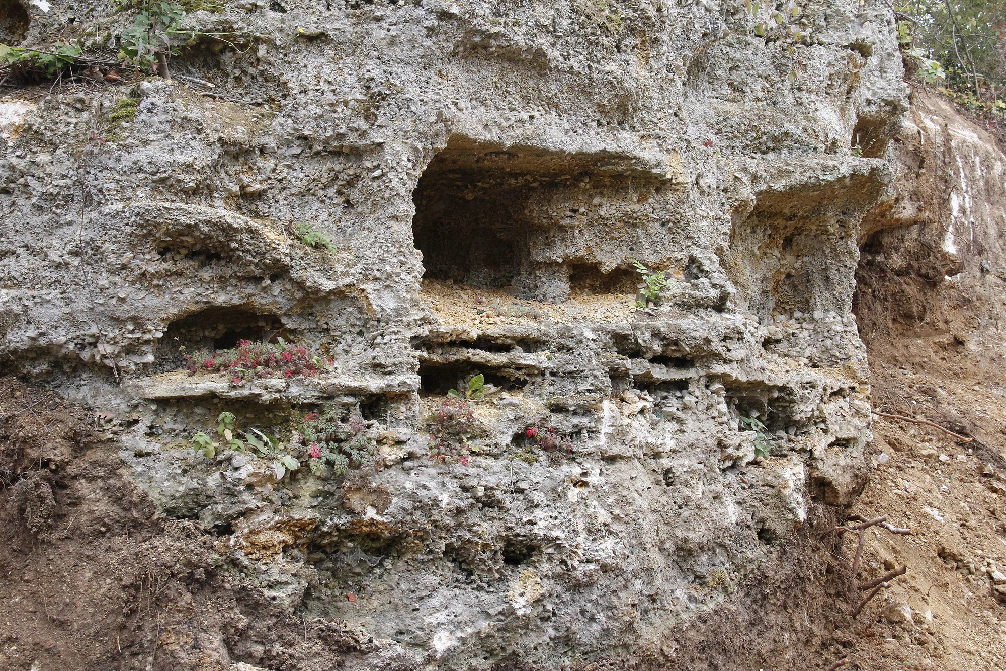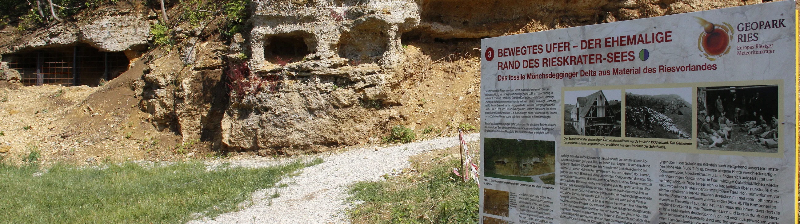 Die Uferzone des Rieskrater-Sees kennt man üblicherweise in der Gesteinsausbildung als bankige und massige Kalke (z. B. am Büschelberg in Hainsfarth oder am Hahnberg, Geotope Klosterberg, Maihingen). Mächtige Grünalgen-Riffbildungen gelten hier als weltweit nahezu einmalige Besonderheit für fossile Seesedimente.