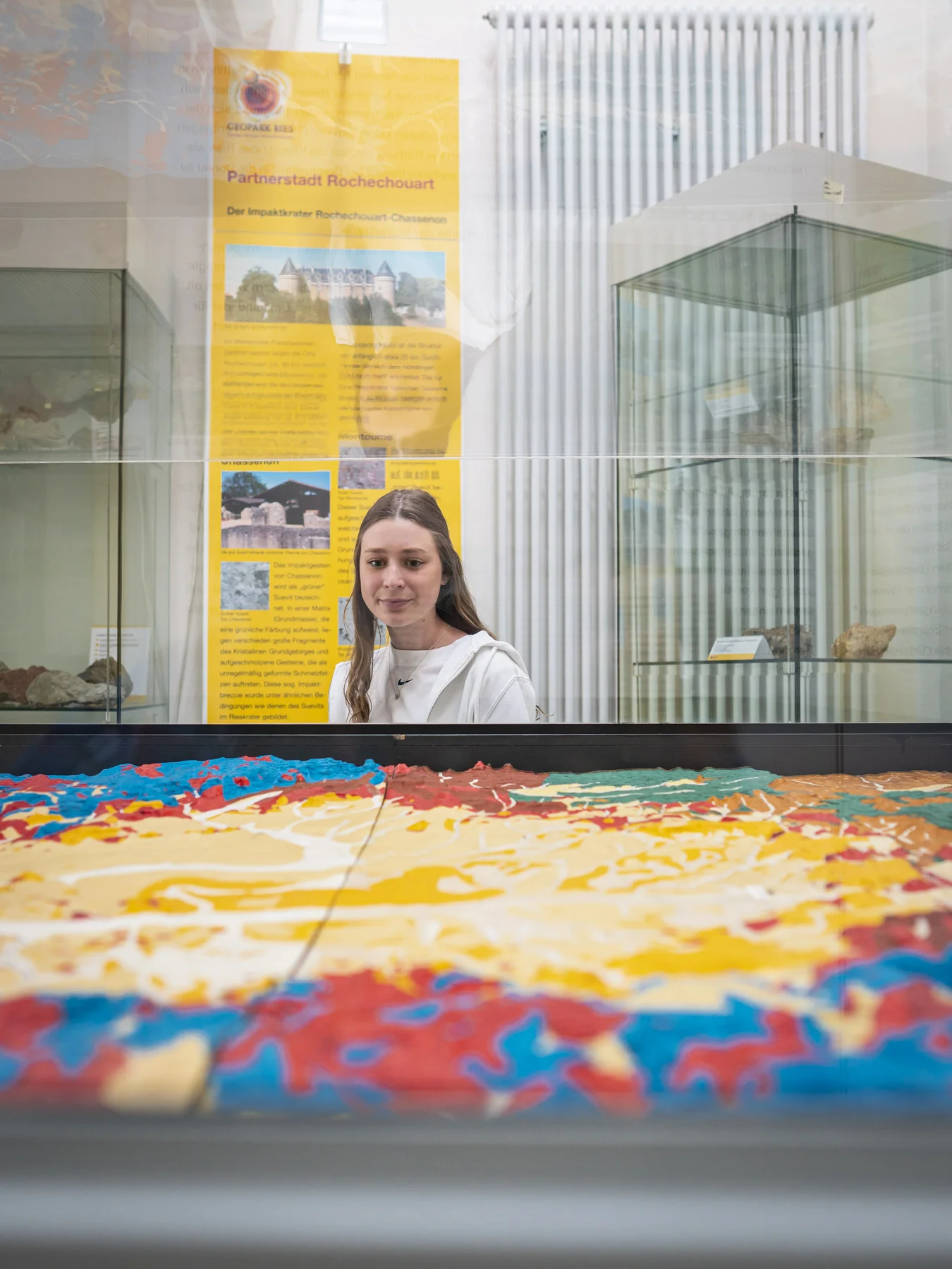 Bebilderte Infotafeln vermitteln alles Wissenswerte über die Nationalen Geoparks in Deutschland, über den UNESCO Global Geopark Ries sowie die besonderen Gesteine des Kraters. Das Infozentrum Oettingen widmet sich - abgesehen von den Standardthemen - einem ganz besonderen Thema: Anhand zahlreicher Exponate und Schautafeln sowie einem Modell des Meteoritenkraters verdeutlicht es auf eindrucksvolle Weise die wechselvolle Geschichte der Besiedlung des Nordrieses.