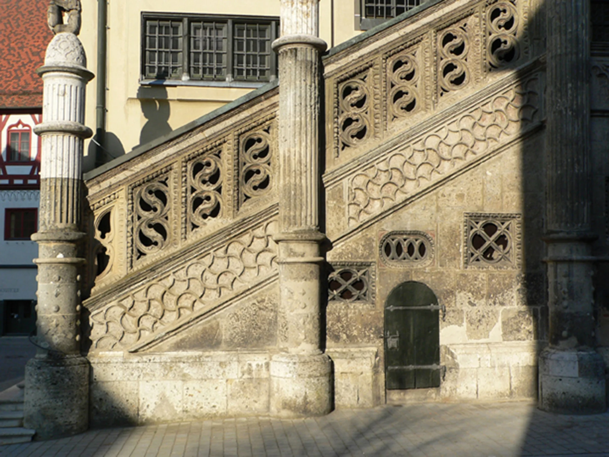 Von besonderer Bedeutung ist die Verwendung stabiler Gesteinspartien für gestalterische Zwecke. Einige Beispiele: Teile der Freitreppe des Nördlinger Rathauses (errichtet 1618 von Baumeister Wolfgang Walberger in der Formensprache der Spätgotik und der Renaissance), Halbreliefs (Schneidt´sches Haus) oder zahlreiche Torbögen an Gebäuden (Sparkasse, Schneidt´sches Haus, Museum „augenblick“). Viele dieser Torbögen wurden vermutlich aber auch übermalt (Reihl´sches Haus, Alte Schranne).