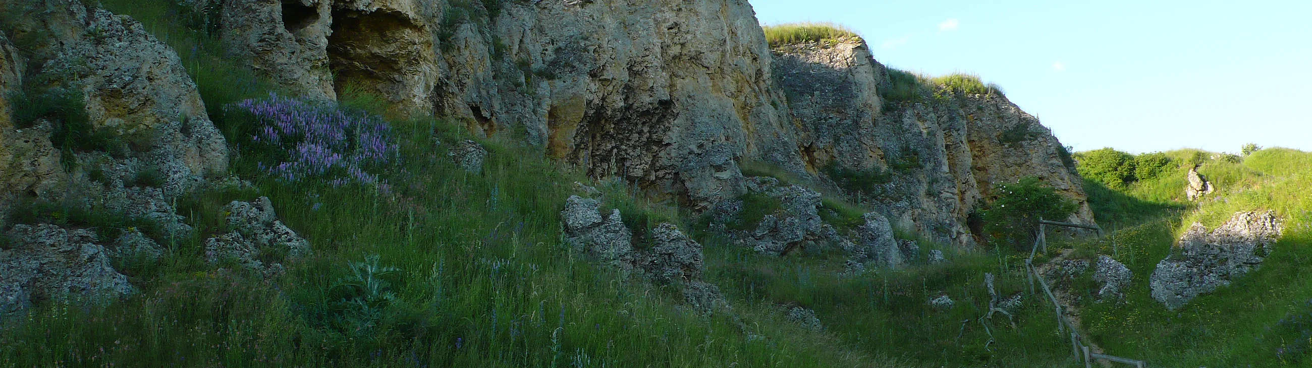 Von Goldburghausen zum Goldberg fahrend, wird am Weg zum Plateau des Goldberg ein aufgelassener Steinbruch erreicht, in dem Travertine und Algenkalke des ehemaligen Riessees abgebaut wurden. Diese bilden den ganzen Goldberg sowie den langgezogenen Rücken, der westlich davon nach Norden abbiegt. Sie sind Bestandteil der nach dem Impakt im Riessee abgelagerten und insgesamt über 400 m mächtigen Sedimentfolge. Es handelt sich bei dem Goldberg um einen einer allochthonen Oberjurakalkscholle aufsitzenden Travertinklotz, der durch vadose und kalkhaltige Wässer entstanden ist. Diese drangen unter dem damaligen Riessee auf und schieden unter Wasser die Süßwasserkalke ab. Im oberen Teil kamen schließlich noch Algenkalke zum Absatz. Während der Steinbruchzeit konnten Fossilien geborgen werden. Vor allem Gastropoden (Schnecken), aber auch Federn und Eier von Wasservögeln werden erwähnt.