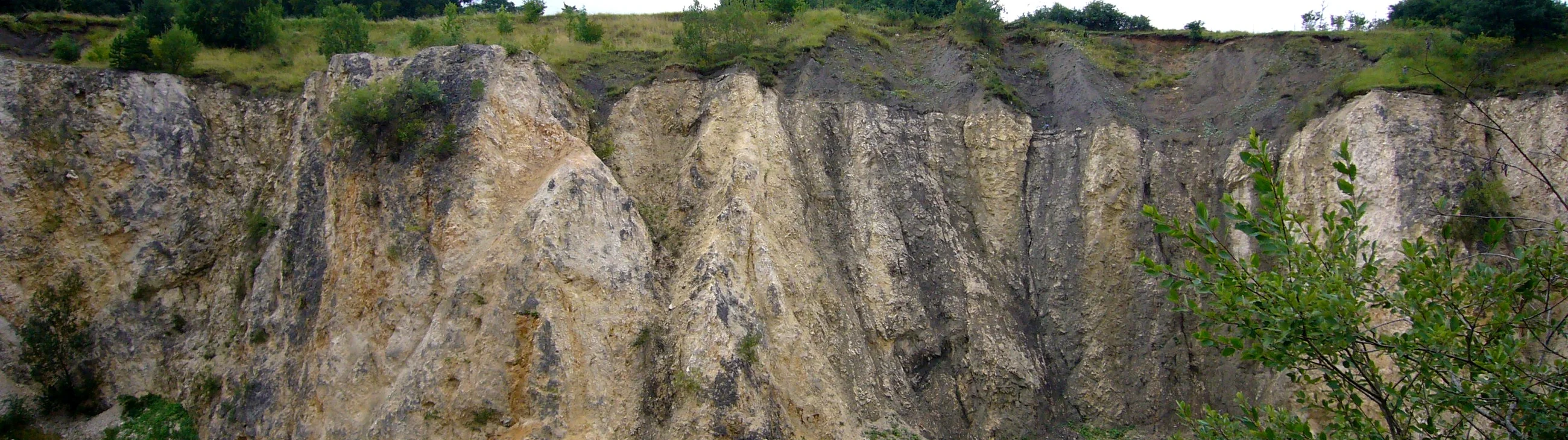 Der ehemalige Steinbruch liegt zwischen innerem und äußerem Kraterrand, ca. 3,5 km innerhalb des südwestlichen Kraterrandes. In dem sehr imposanten, trichterförmig ausgebeuteten, ehemaligen Steinbruch sind brecciierte und geklüftete Malmkalke (Malm Delta und Epsilon) als Massenkalke aufgeschlossen, die von Tonen des Lias überlagert werden. Am Top der Malmkalke soll nach Hüttner & Schmidt-Kaler (2003) eine Schlifffläche ausgebildet sein, die jedoch aufgrund der ausgeprägten, etwa 20 m hohen Steilstufe nicht mehr zugänglich ist. Der Lias Delta und Zeta sowie der Dogger Alpha, die zur Bunten Breccie gehören, sind teils taschenartig in den Malm eingelagert und teils abgeschwemmt. Dadurch ist die Basis des ehemaligen Steinbruchs mit tonigem Material aufgefüllt. Durch die wechselnde Konsistenz der tonigen Schichten ist die Steinbruchsohle nicht begehbar.