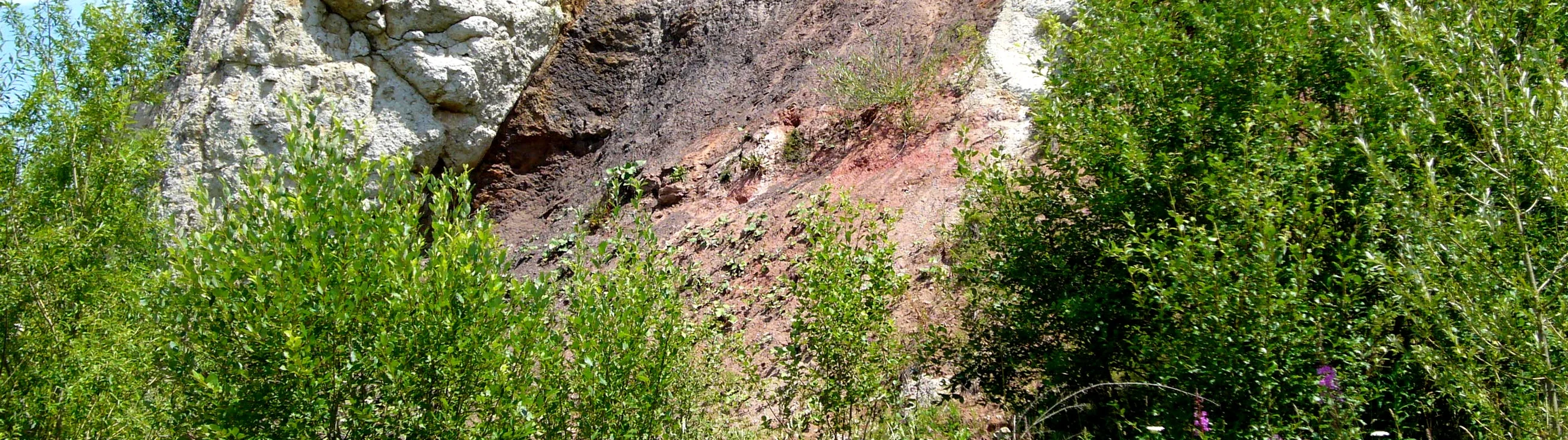 Auf der Ostseite des Bruches ist die (sehr unebene) Auflagerung von glasreichem Suevit auf Bunter Breccie hervorragend aufgeschlossen. Die Bunte Breccie besteht hier überwiegend aus rötlichen und bräunlichen Keuper- und Dogger-Gesteinen. Zwischem dem Suevit und der Bunten Brekzie liegt eine dünne Übergangszone mit feinkörnigem Suevit.