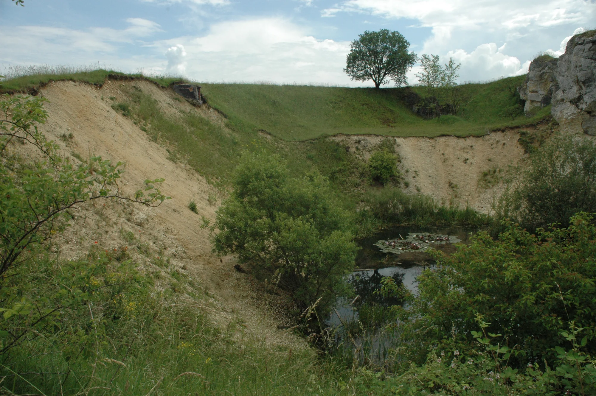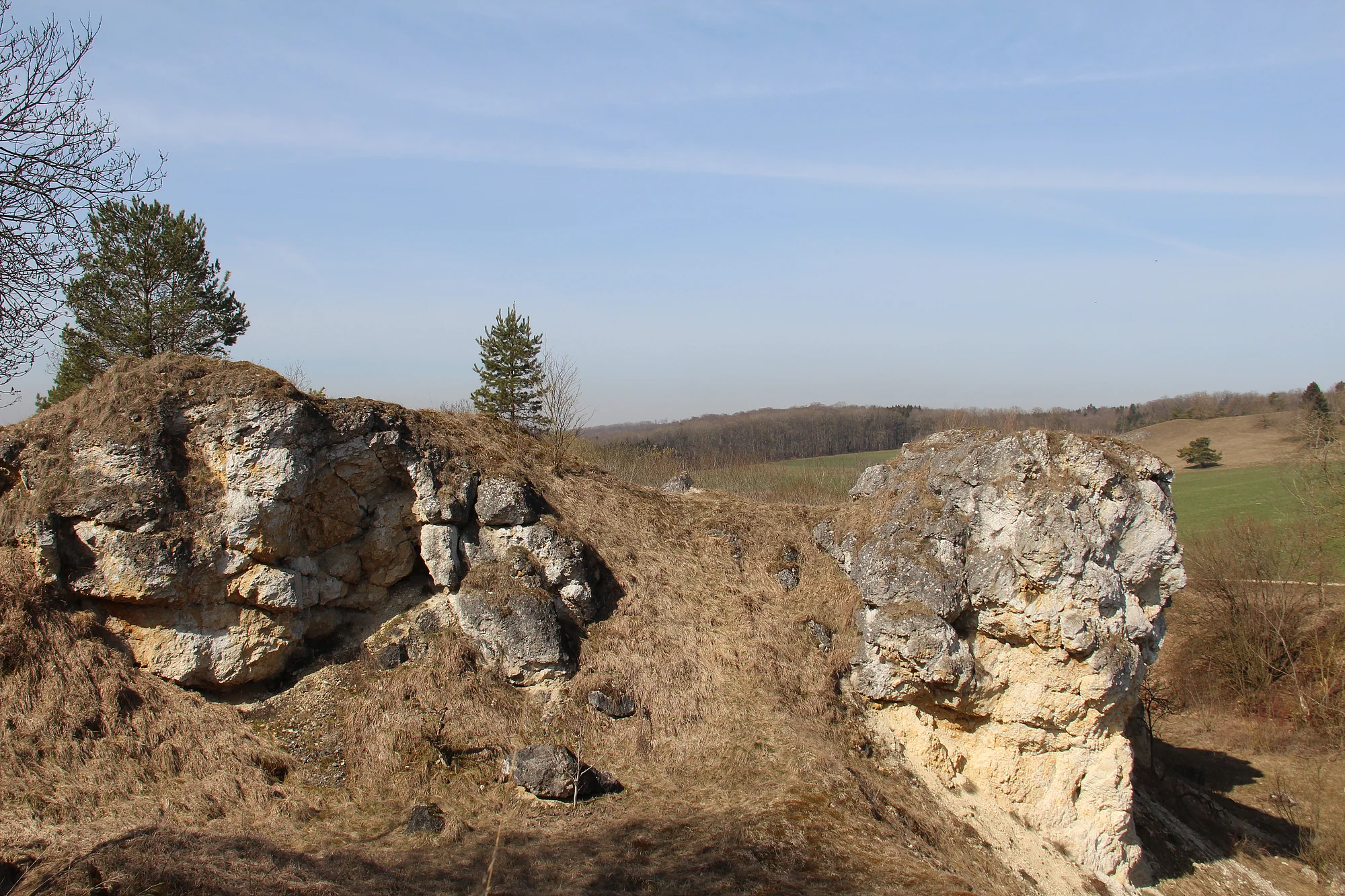 Wenig nordwestlich von Demmingen und ca. 11 km südwestlich vom Ries-Rand wurde ein Steinbruch betrieben, in dem überwiegend Auswurfgesteine des Ries-Ereignisses abgebaut wurden. Neben großen disloziierten (verlagerten) Oberjurablöcken liegen weitere stark zu Gries und Breccien zertrümmerte Oberjurakalke vor. Auf der Sohle des Steinbruchs hat sich ein kleiner ständiger Tümpel gebildet, was auf die Abdichtung durch tonige Breccien im Untergrund schließen lässt.