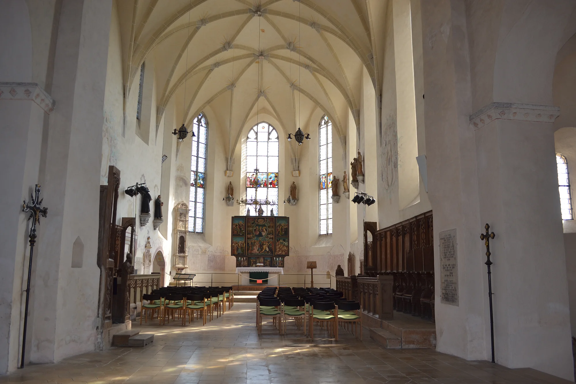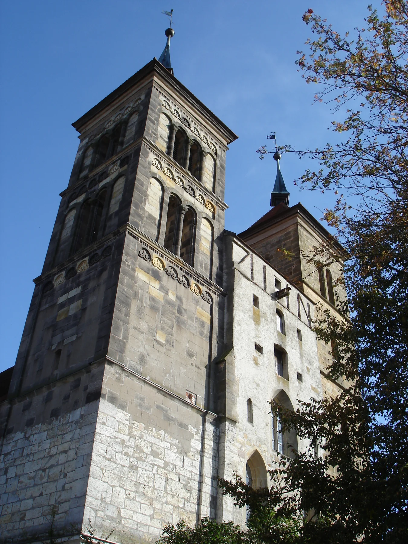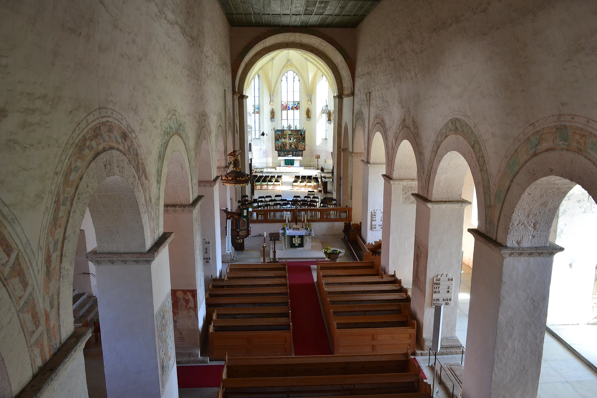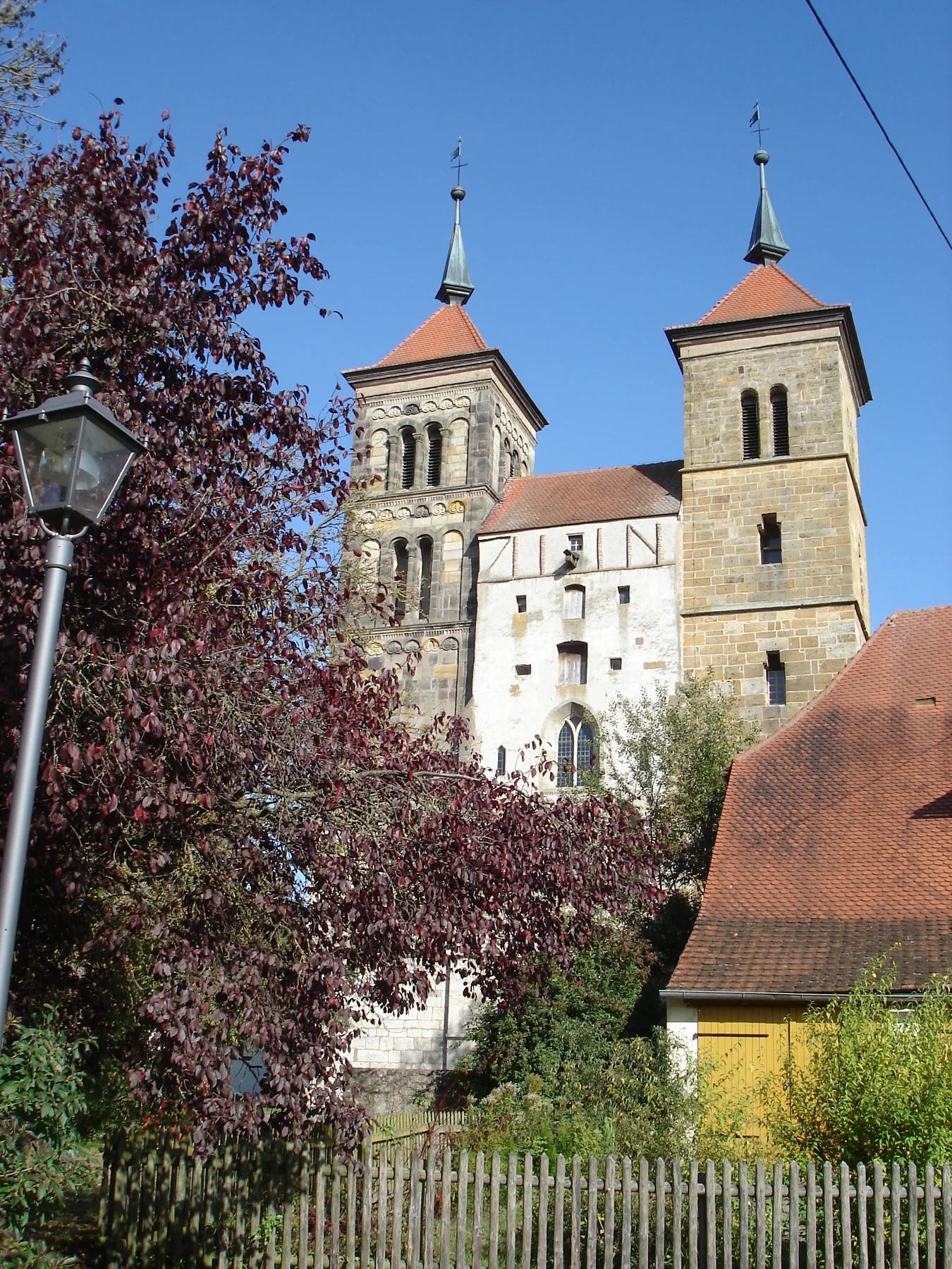 Die im Wörnitztal weithin sichtbare, ehemalige Benediktinerklosterkirche mit dem mächtig aufragenden Turmpaar wurde um 1120 im romanischen Stil errichtet. Im Bauernkrieg schwer beschädigt, wurde das Kloster 1534 aufgehoben und die Kirche der evangelisch-lutherischen Gemeinde übergeben. Seit der grundlegenden Restaurierung 1969ff. verfügt die Kirche über ein siebenjochiges Mittelschiff und zwei Seitenschiffe mit hölzernen Federdecken sowie einen Hochchor mit Sternrippengewölbe. Kostbarster Besitz der Kirche ist der große Hochaltar, dessen Malereien 1513 von Hans Schäufelin geschaffen wurden. Sehenswert sind auch die z.T. sehr gut erhaltenen Wandmalereien aus dem 13. bis 16. Jahrhundert.