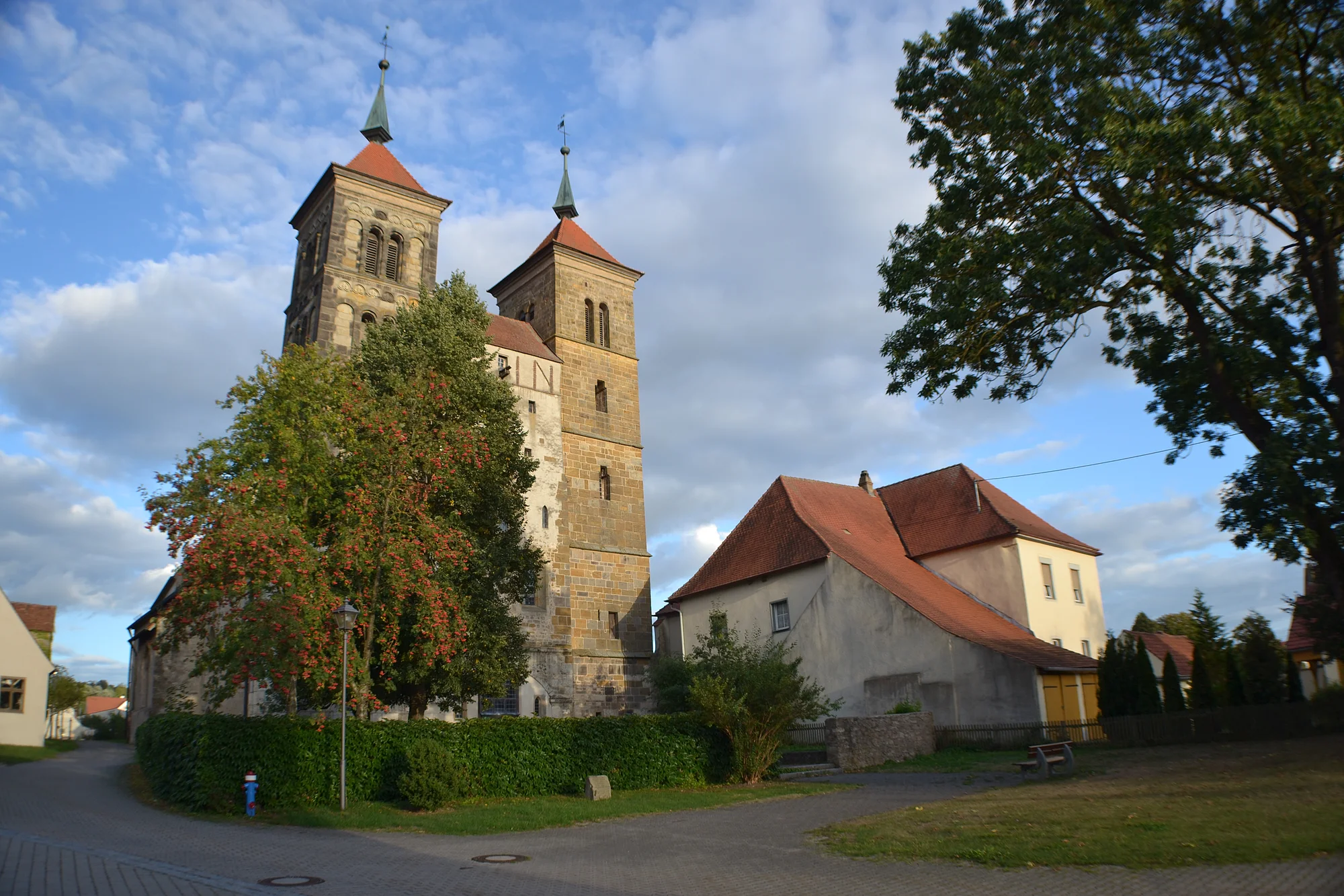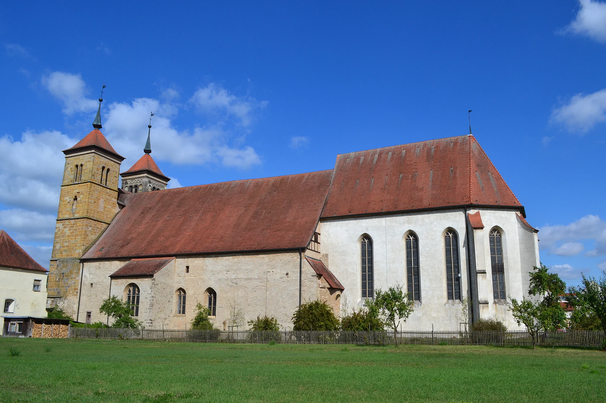 Die im Wörnitztal weithin sichtbare, ehemalige Benediktinerklosterkirche mit dem mächtig aufragenden Turmpaar wurde um 1120 im romanischen Stil errichtet. Im Bauernkrieg schwer beschädigt, wurde das Kloster 1534 aufgehoben und die Kirche der evangelisch-lutherischen Gemeinde übergeben. Seit der grundlegenden Restaurierung 1969ff. verfügt die Kirche über ein siebenjochiges Mittelschiff und zwei Seitenschiffe mit hölzernen Federdecken sowie einen Hochchor mit Sternrippengewölbe. Kostbarster Besitz der Kirche ist der große Hochaltar, dessen Malereien 1513 von Hans Schäufelin geschaffen wurden. Sehenswert sind auch die z.T. sehr gut erhaltenen Wandmalereien aus dem 13. bis 16. Jahrhundert.