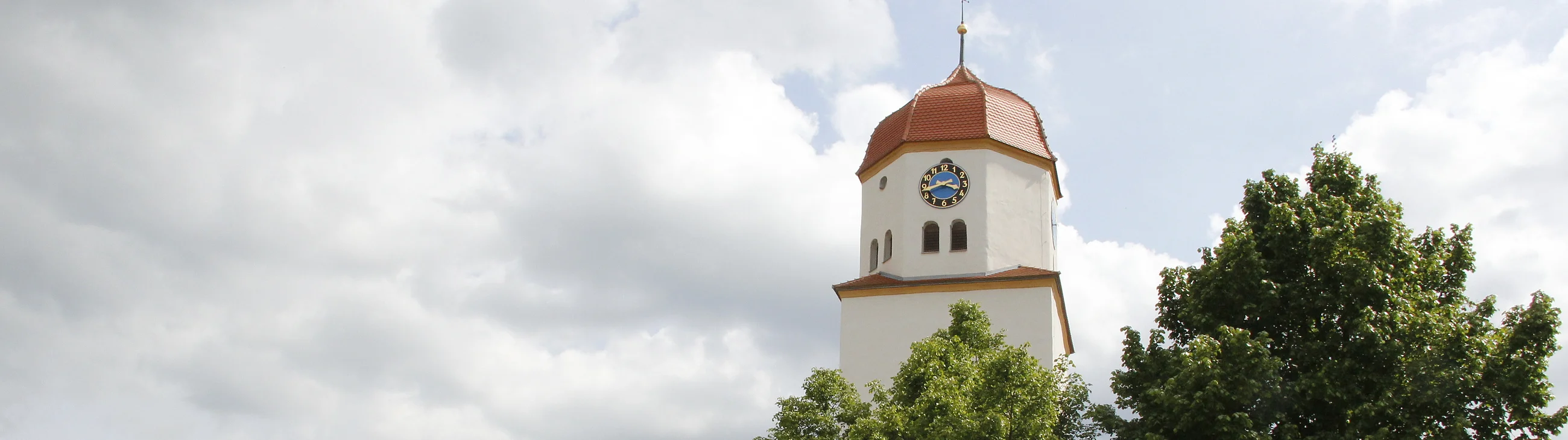 Der älteste erhaltene Teil der Kirche ist der quadratische Unterbau des Turms aus dem 14. Jh. Alles andere wurde 1648 von den Schweden zerstört. Um 1670 Wiederaufbau der Kirche und Erhöhung des Turms.