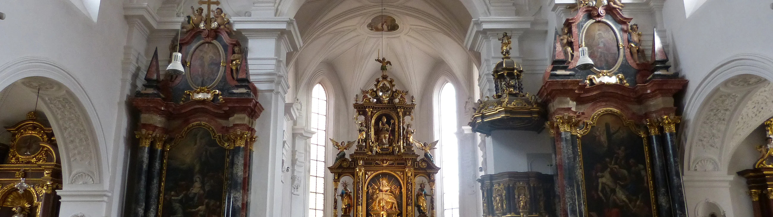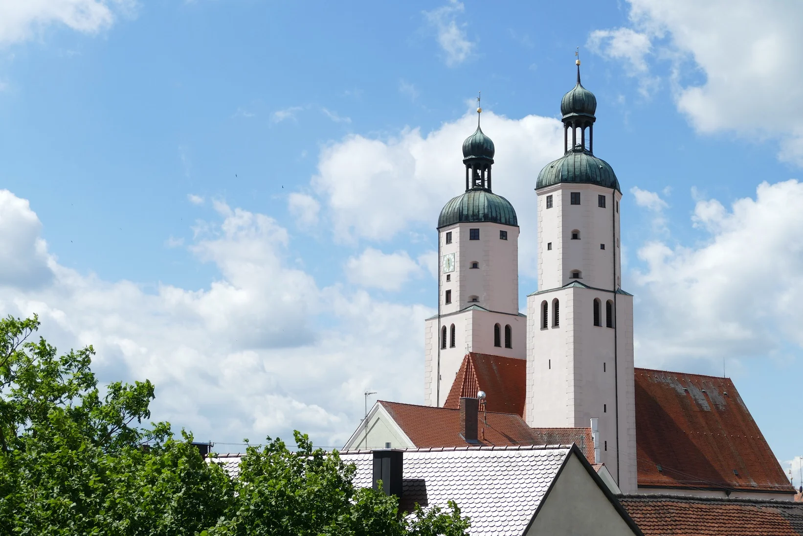 Das doppeltürmige Wahrzeichen der Stadt Wemding geht auf ein Gelübde Mangolds I. von Wörth zurück. Ab 1030 Bau einer wohl dreischiffigen, kreuzförmig angelegten Basilika. Im Lauf der Jahrhunderte erfolgten mehrere Um- und Erweiterungsbauten unter wechselnden Patronatsherren. Das Prunkstück der heutigen Ausstattung stellt der mächtige barocke Hochaltar (1630-33) vom Donauwörther Bildhauermeister Augustin Manasser dar. Weiterhin sehenswert sind die Stuckmarmor-Seitenaltäre (1713) aus der Werkstatt von Dominikus Zimmermann sowie ein wertvolles, die Stände darstellendes Fresko an der südl. Chorwand um 1450. Außerdem zahlreiche Grabsteine und Epitaphien lokaler Persönlichkeiten.