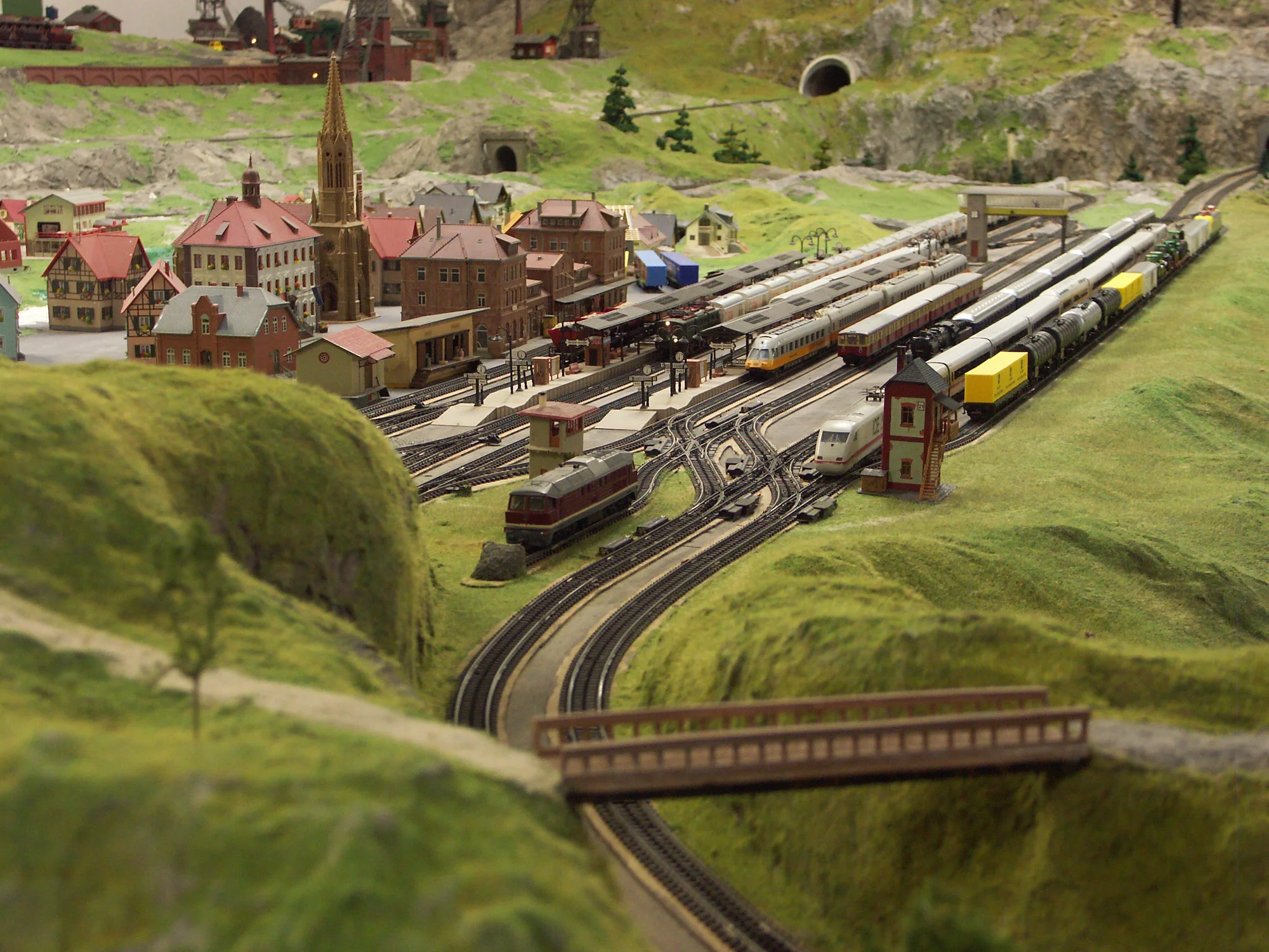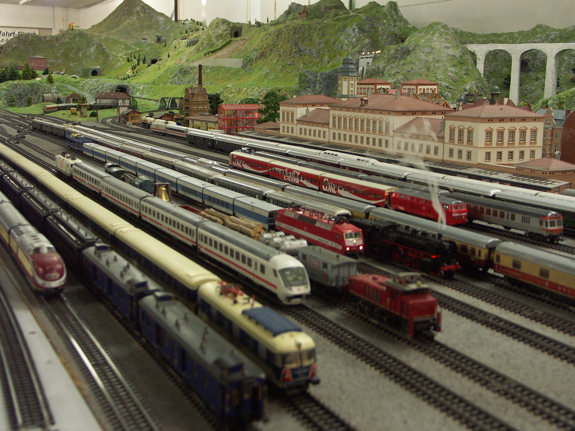 Die Anlage verfügt über einen vollständigen Fahrbetrieb von 218 Zuggarnituren, von alten Dampfloks mit echtem Dampf, dem Orient-Express bis hin zum modernen ICE.