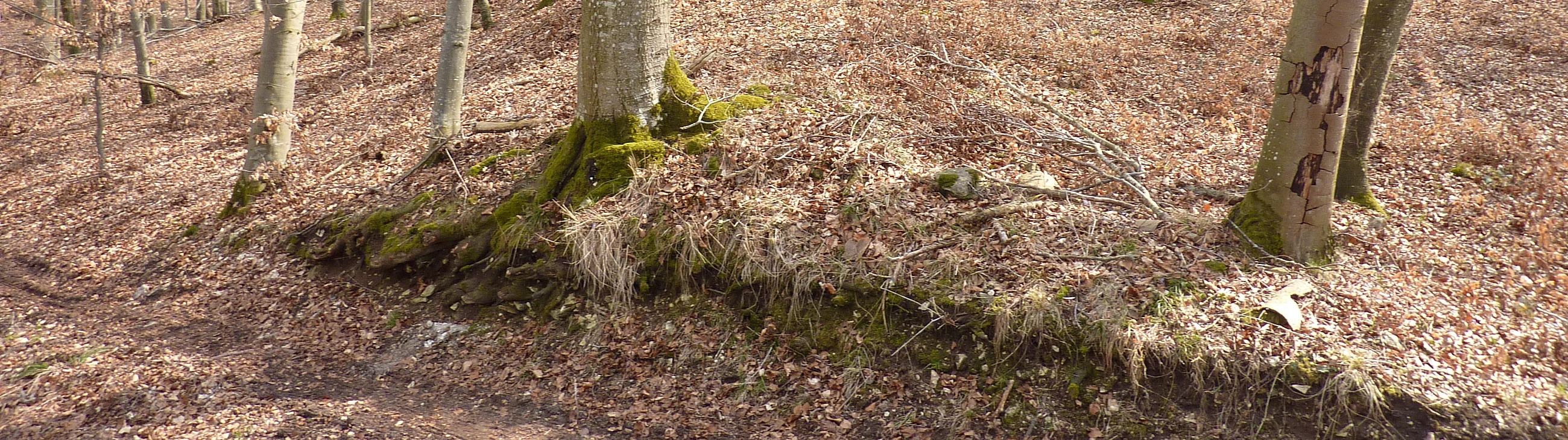 öffentlich zugänglich, jedoch vegetationsbedingt im Frühjahr am besten sichtbar.