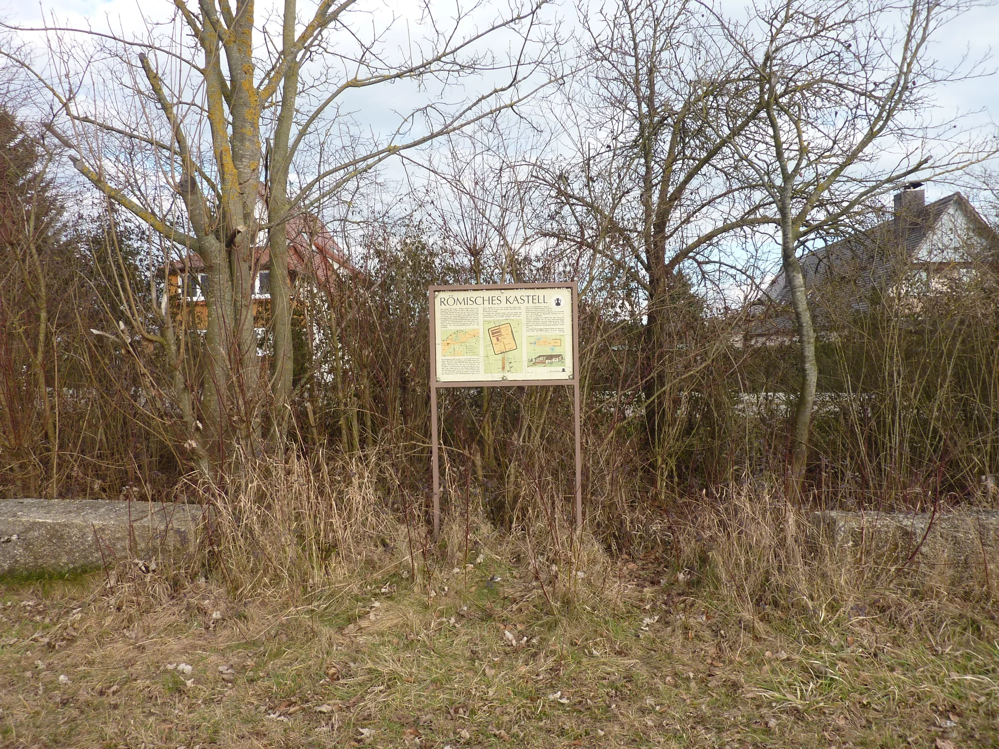 Nördlich von Munningen liegen auf einer Anhöhe über der Wörnitz Reste eines Holz-Erde-Kastells mit einer Größe von 150 m × 179 m. Die 500 Mann starke, aus Infanterie und Kavallerie zusammengesetzte Truppe ist namentlich nicht bekannt. Erbaut um 90 n. Chr., wurde das Lager um 110 mit der Vorverlegung der Reichsgrenze aufgegeben. Südlich des Lagers wurde ein Bad entdeckt. Nach Abzug der Truppe entstand eine zivile Siedlung, die bis zum Zusammenbruch der römischen Herrschaft bestand. Heute ist oberirdisch nichts mehr zu sehen. Infotafel am Radweg.