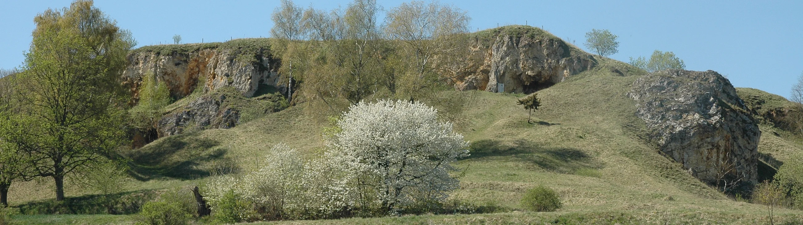 Der Goldberg, ein markanter Zeugenberg aus Süßwasserkalk, erhebt sich rund 60 m über das westliche Ries. Er liegt an der westlichen Kraterrandzone und stellt eine ca. 2 km lange, halbbogenförmige Erhebung dar. Die fast ebene, 250 m lange und 150 m breite Hochfläche fällt nach drei Seiten steil ab, nur nach Westen hin ist sie über einen flachen Sattel mit den westlichen Riesrandhöhen verbunden. Grabungen wurden hier zwischen 1911 und 1923 unternommen. Während des Zweiten Weltkrieges sind wichtige Dokumentationsunterlagen verloren gegangen.