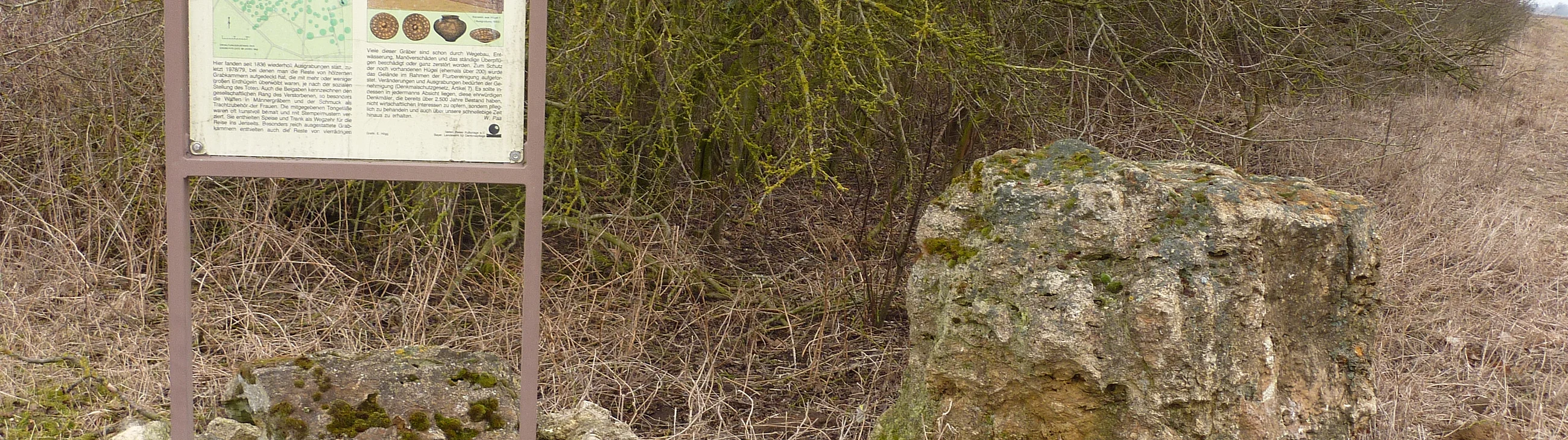 Das 1950 noch etwa 170 Hügel zählende Gräberfeld liegt auf einem trockenen Rücken inmitten feuchter Bachniederungen und sumpfigen Geländes. Einzig nach Norden hin zu den westlichen Riesrandhügeln ist ein schmaler Zugang frei. Bestattungen der Hallstattzeit (780 - 520 v.Chr.) und der frühen Latènezeit (500 - 410 v.Chr.) sind bekannt. Nach den Angaben der von E. Frickhinger befragten Bauern ist es wahrscheinlich, dass ehemals erheblich mehr Hügel vorhanden waren; sie wurden im Zuge von Feldarbeiten eingeebnet. Der größte Teil der noch vorhandenen Hügel ist angetrichtert oder von Gräben durchzogen, doch wurde nur eine Grabung aus der Zeit vor Frickhingers Aktivitäten bekannt. Diese hat 1910 der Verein für Heimatkunde im Ries durchgeführt. Die Funde, Keramik aus Brandgräbern der Stufe Hallstatt C, werden im Heimatmuseum Oettingen aufbewahrt. Eine zweite Untersuchung wurde 1924 in relativ knapper Grabungszeit vorgenommen, die Ergebnisse sind dabei relativ gut dokumentiert: Neben Keramik der Stufe Hallstatt C fand man zwischen den Hügeln und in den Hügelschüttungen Hornsteinmaterial, das auf eine endneolithisch-frühbronzezeitliche Siedlung unter dem Gräberfeld hinweist. Zwei weitere Grabungen des Landesamtes für Denkmalpflege Augsburg erbrachten in den Jahren 1956 und 1957 neben weiterer Keramik ein hallstattzeitliches Wagengrab.