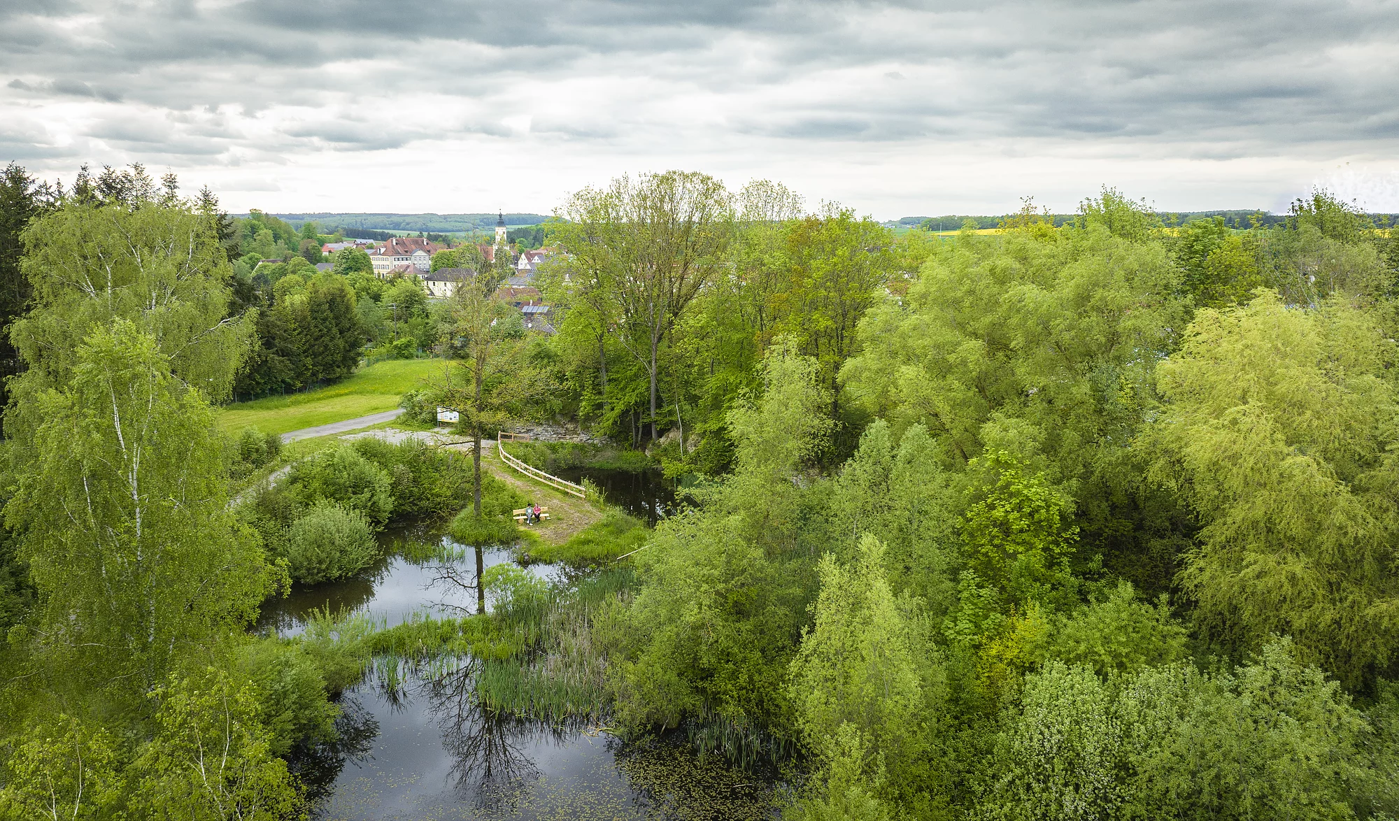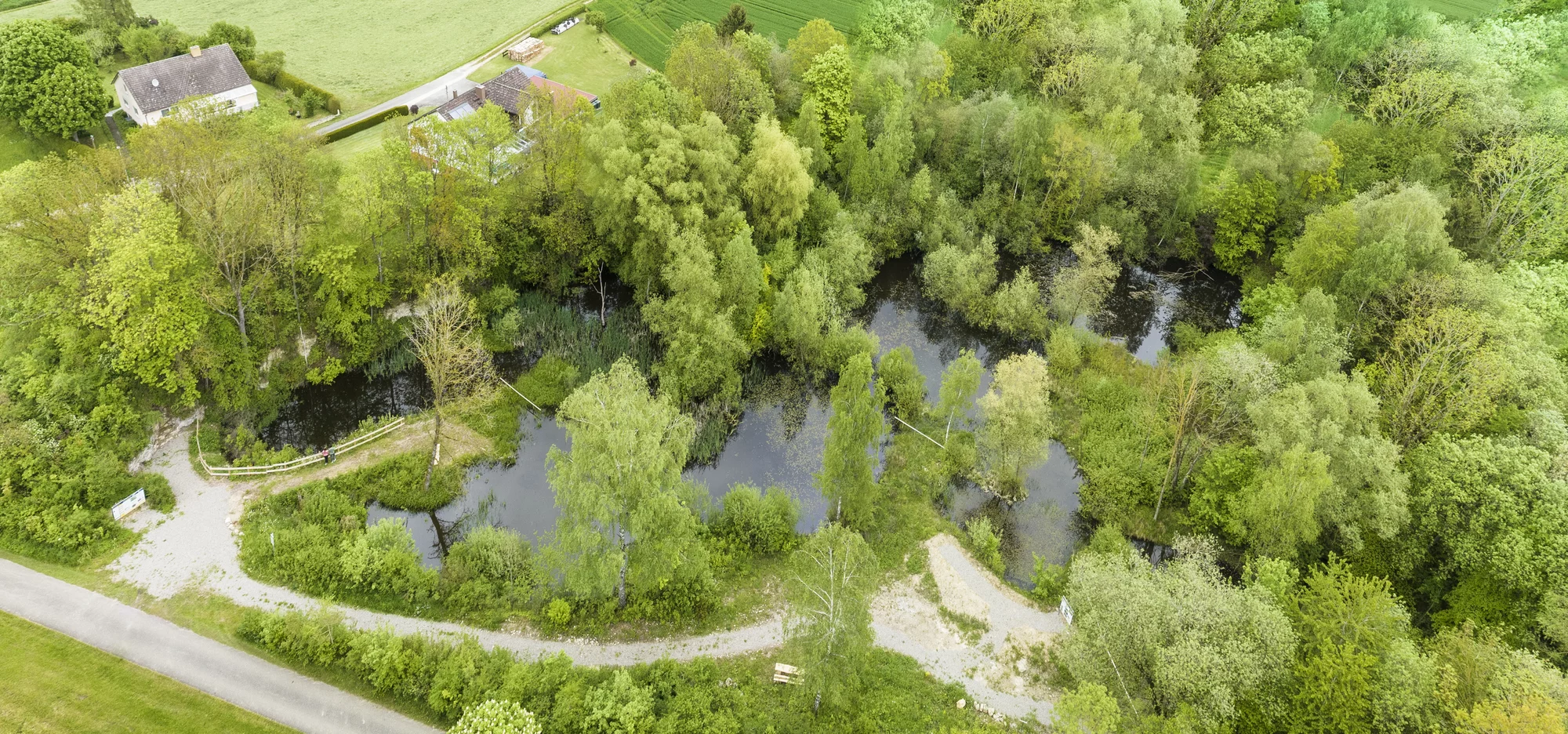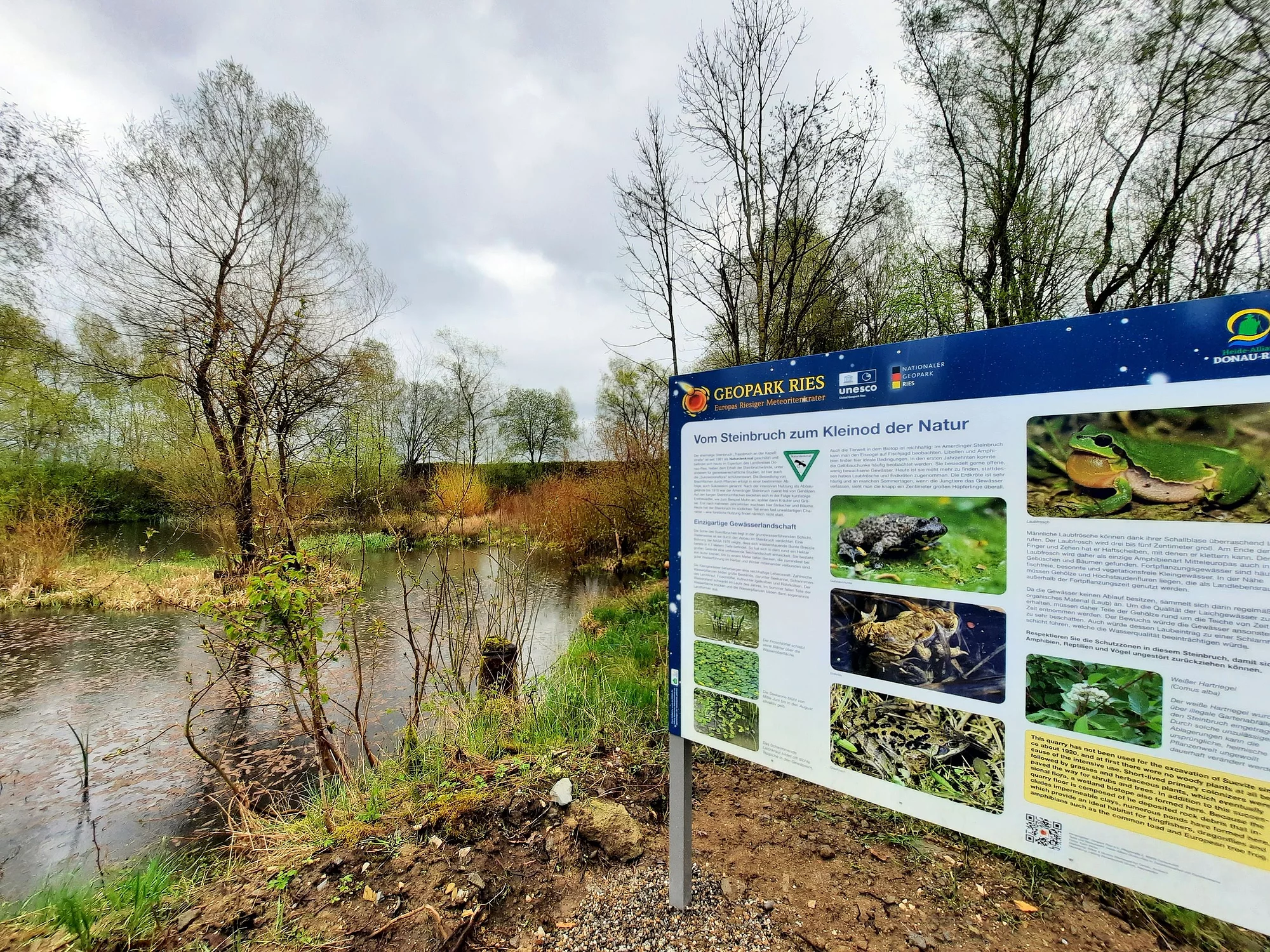 Der ehemalige Suevit-Steinbruch ist rund einen Hektar groß und umfasst große Wasserflächen.