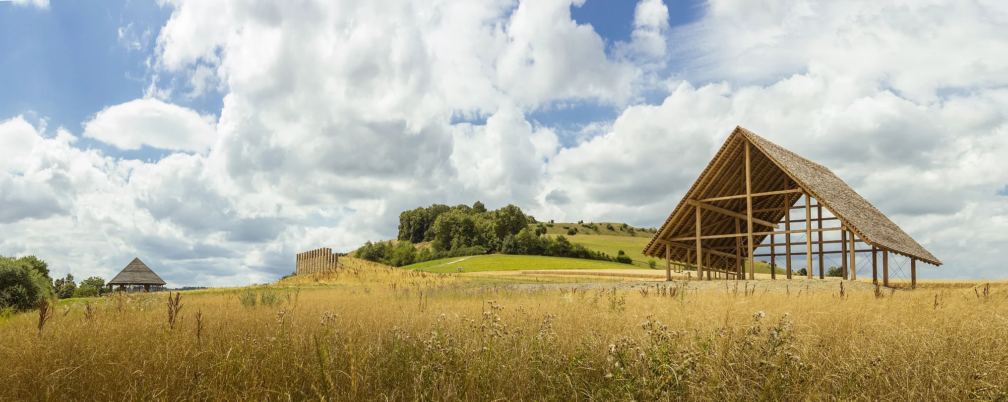 Überwiegend Gras- und Heidewege führen uns über das Reimersbergele zum Langenberg. Von diesem langgestreckten, felsigen Heidehügel aus bieten sich herrliche Blicke ins Ries und auf unser nächstes Ziel, den ebenfalls aussichtsreichen Goldberg. Interessante prähistorische Funde aus verschiedenen archäologischen Grabungen am Goldberg können im Goldbergmuseum in Goldburghausen besichtigt werden. Durch den Osterholzer Wald wandern wir weiter bis zu einem rekonstruierten keltischen Grabhügel. Von dort nähern wir uns in großen Schritten dem Ipf. Erhaben und mächtig thront der 668 m hohe Zeugenberg über der ehemaligen Reichsstadt Bopfingen. Für die Kelten war er eines der bedeutendsten Zentren der Macht in Süddeutschland. In einer Freilichtanlage mit der Rekonstruktion eines keltischen Fürstenhofes bekommen wir einen Einblick in die Welt der Kelten. Über den Blasienberg wandern wir zurück nach Kirchheim.